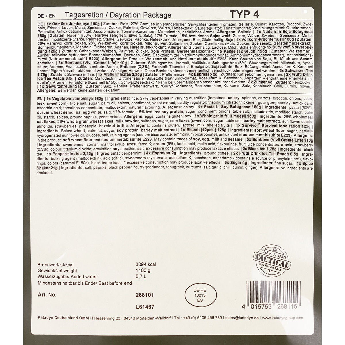 Trek 'n Eat, Tagesration, "Typ IV