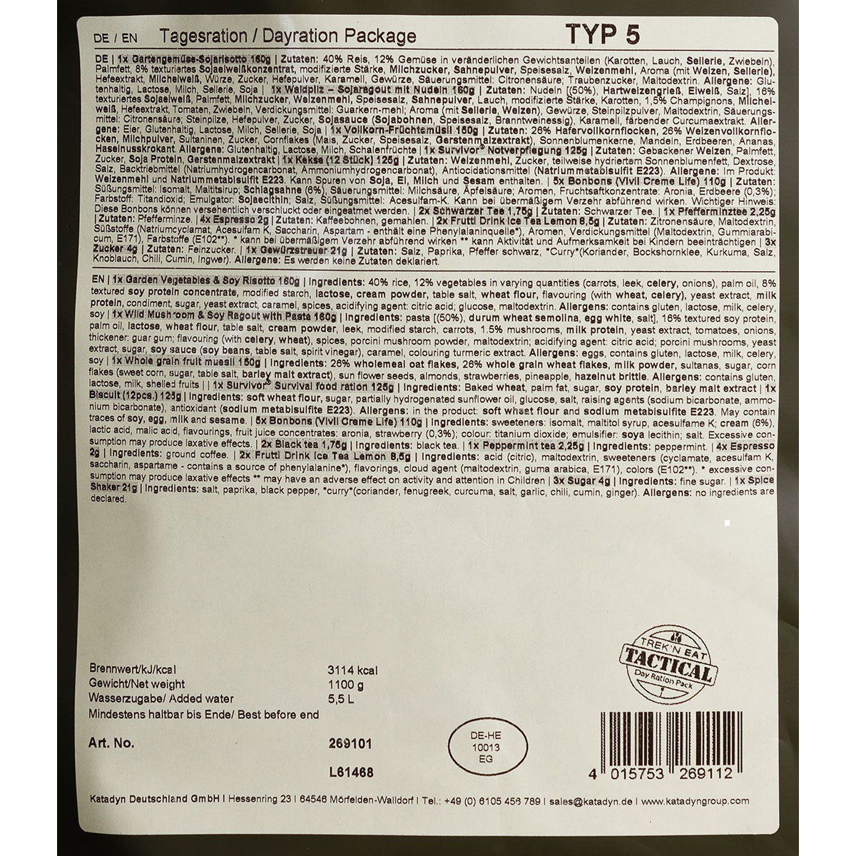 Trek 'n Eat, Tagesration, "Typ V"